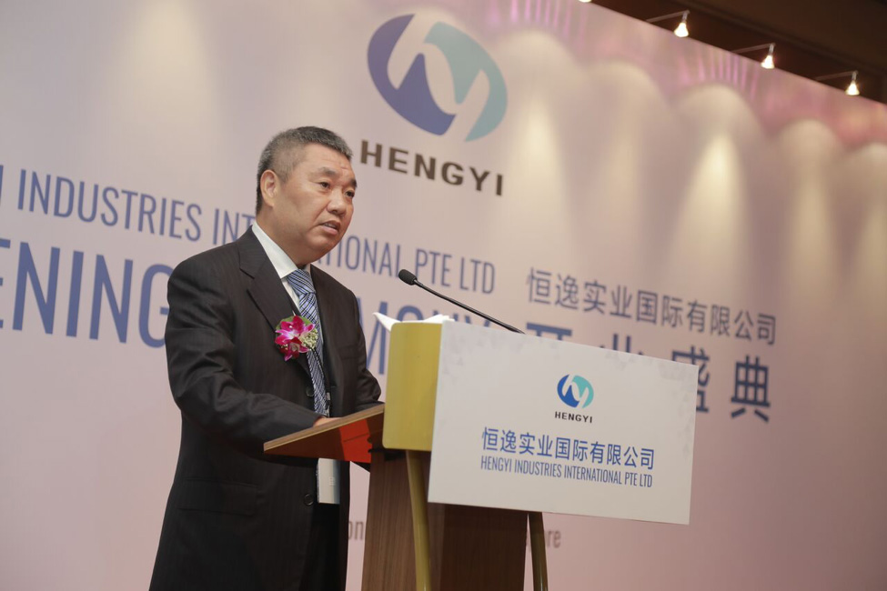 Mr Qiu Jian Lin, Chairman of Zheijiang Hengyi Group giving a speech at the ceremony.